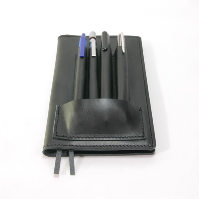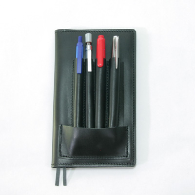 4本ペン挿し付き測量野帳レベルブック本革レザーカバー本革ブラック
